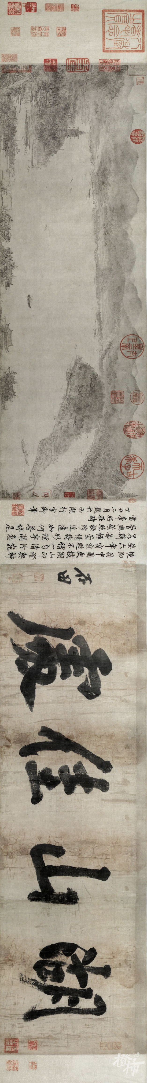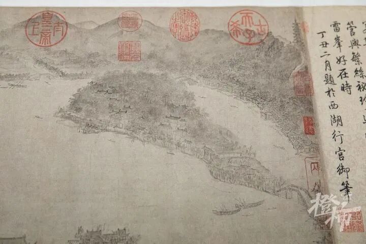 李嵩的這幅西湖圖流傳至明初,曾經太祖朱元璋御覽,還寫下了長篇題跋,這對於明太祖來說,也是罕見的舉動。