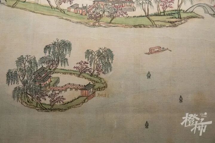 這幅俯瞰全景圖繞了西湖一週——從斷橋、寶石山起,再從葛嶺一直到南屏一帶。今天我們站在城隍閣上往下望去,大致就是畫中景色。如果仔細看會發現,這幅全景圖裡缺了今天的“湖中三島”:小瀛洲、湖心亭、阮公墩,因為這三個湖中島在明清時期才形成。