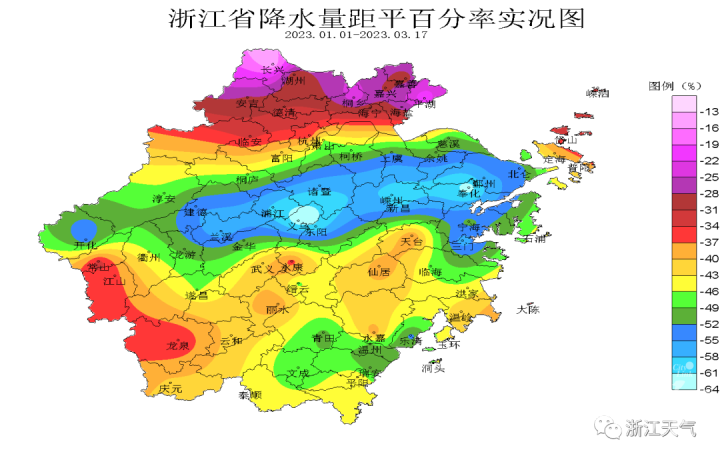 浙江天氣說,如此多雨,都怪西南暖溼氣流過於旺盛,不過,這也是雨水君在“趕業績”。今年以來(1.1-3.17)全省平均累計降水量為128.5毫米,較常年同期偏少四成多,其中,新昌、磐安、鎮海、奉化為歷史同期第一少!