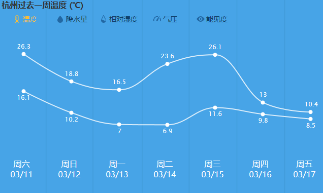 同時,下週後半段的氣溫又會坐起“滑滑梯”,最高氣溫重回1字頭,甚至不足15℃。要不怎麼說杭州的天氣是懂降溫的,一夜換季,一週穿越四季,冷暖轉換頻繁,大家注意調節衣物,保重身體。