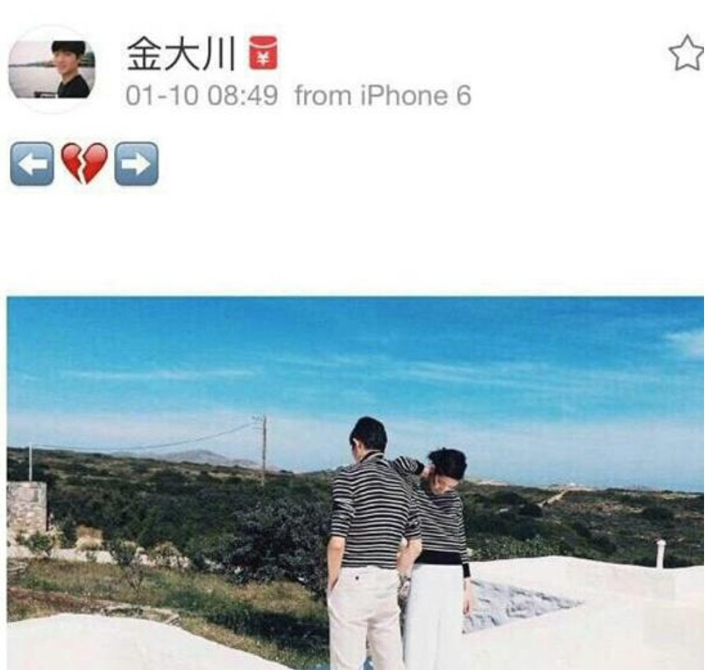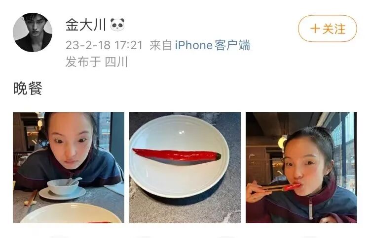 金大川在微博曬出和雎曉雯一起約會吃晚餐的照片,