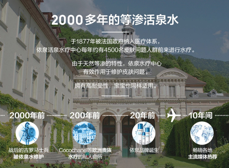 法國依泉品牌以其獨特的天然等滲溫泉水為基礎,研發生產了多個系列的個人護理產品,為全球數萬皮膚護理者。