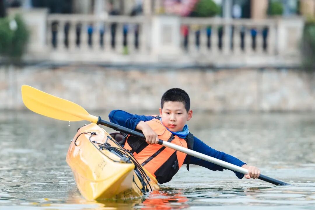 熟練之後,教練將帶著孩子們正式開始皮划艇訓練,水上世界的全新體驗激發了孩子天性中的歡樂與勇氣。