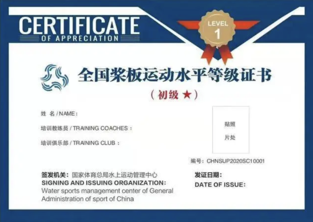 參加槳板運動水平等級培訓,並通過考核的學員,可獲得由國家體育總局認證的全國槳板運動水平等級證書。國家也在逐步通過開展中國俱樂部聯賽、全國青少年U系列賽事等舉措,來促進體教融合,賽事取得名次,可獲得國家相應運動員技能等級證書,獲得國家運動員稱號,高考升學可相應加分。