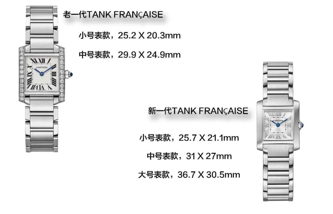 除了與上一代比較外,全新Tank Française腕錶之間也有不同。