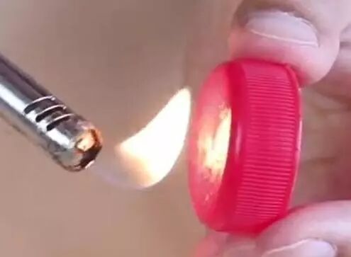 首先,我們準備一個乾淨的塑料瓶蓋,然後拿打火機在瓶蓋的正面均勻烤制一會,讓整個瓶蓋面都能受熱,注意時間不要太長、也不要離的太近。