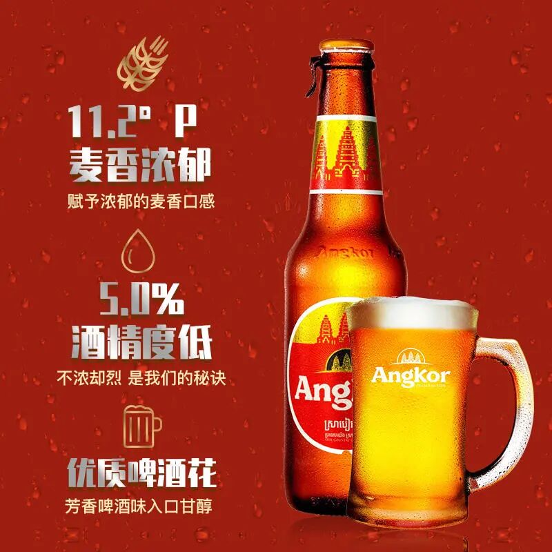 吳哥啤酒不同於市面上普遍的工業啤酒,此款啤酒為精釀風味,採用西哈努克瀑布天然山泉水釀製,加入德國進口的酒花,經過二度發酵,泡沫細膩持久,酒味醇厚,味道厚重卻不苦,帶給你無限的回味。
