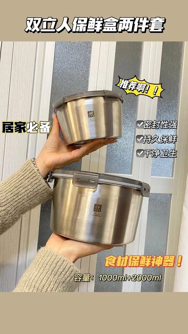 🛒🔥雙立人密封盒!超大容量,1000+2000ML一套!你可以永遠相信𝟑𝟎𝟒不鏽鋼保鮮盒!!