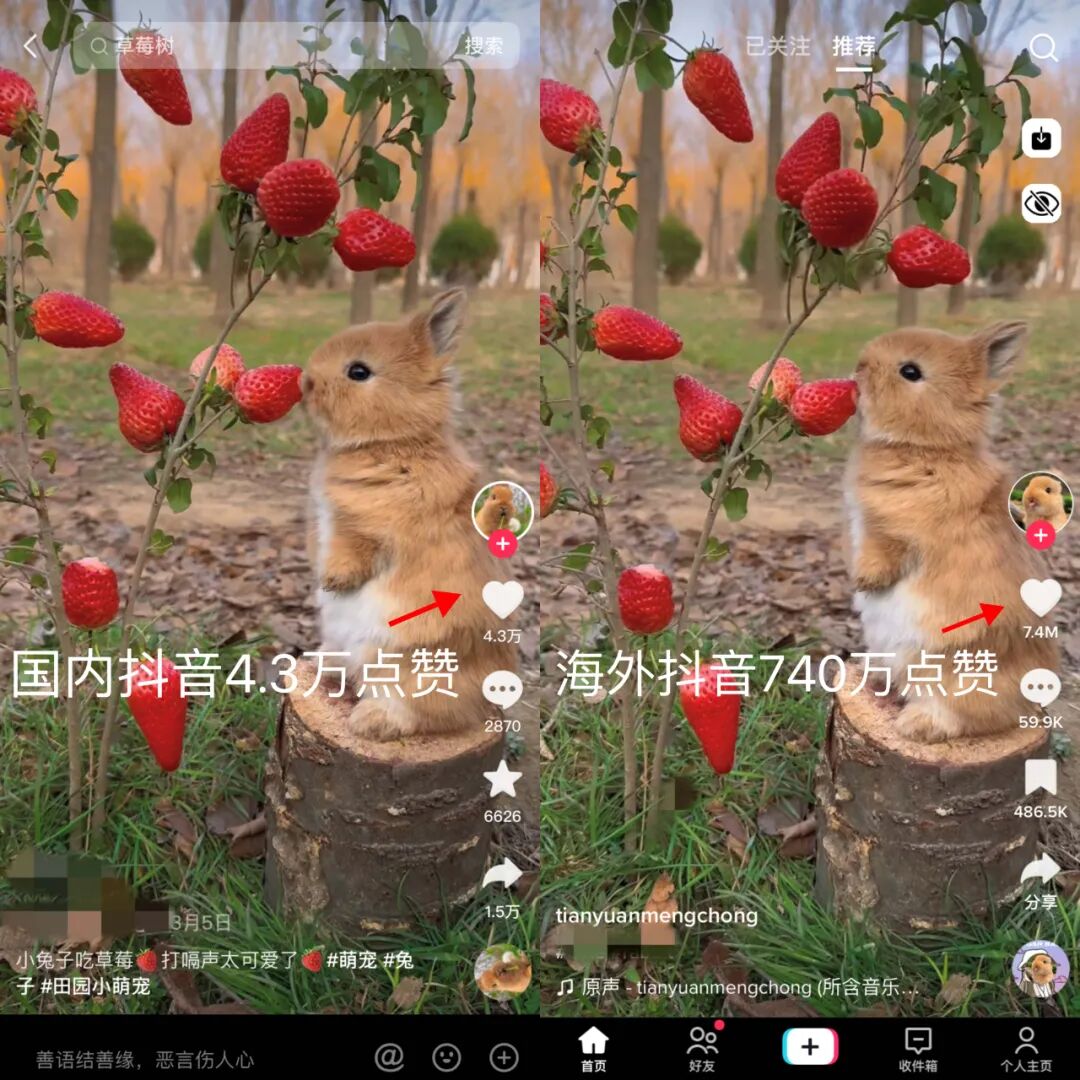 同樣的視頻搬運到海外,在海外短視頻平臺的點贊是740萬,