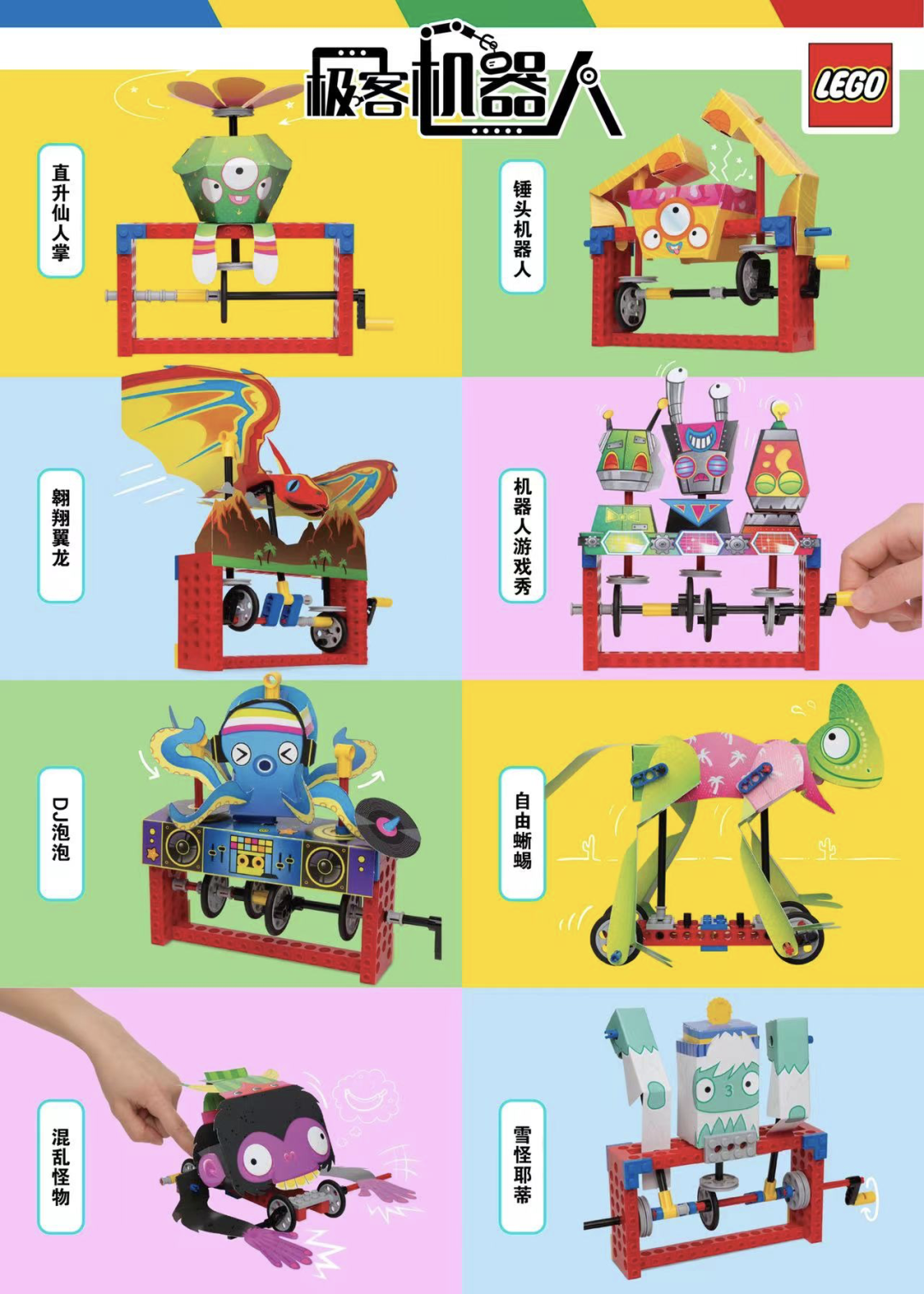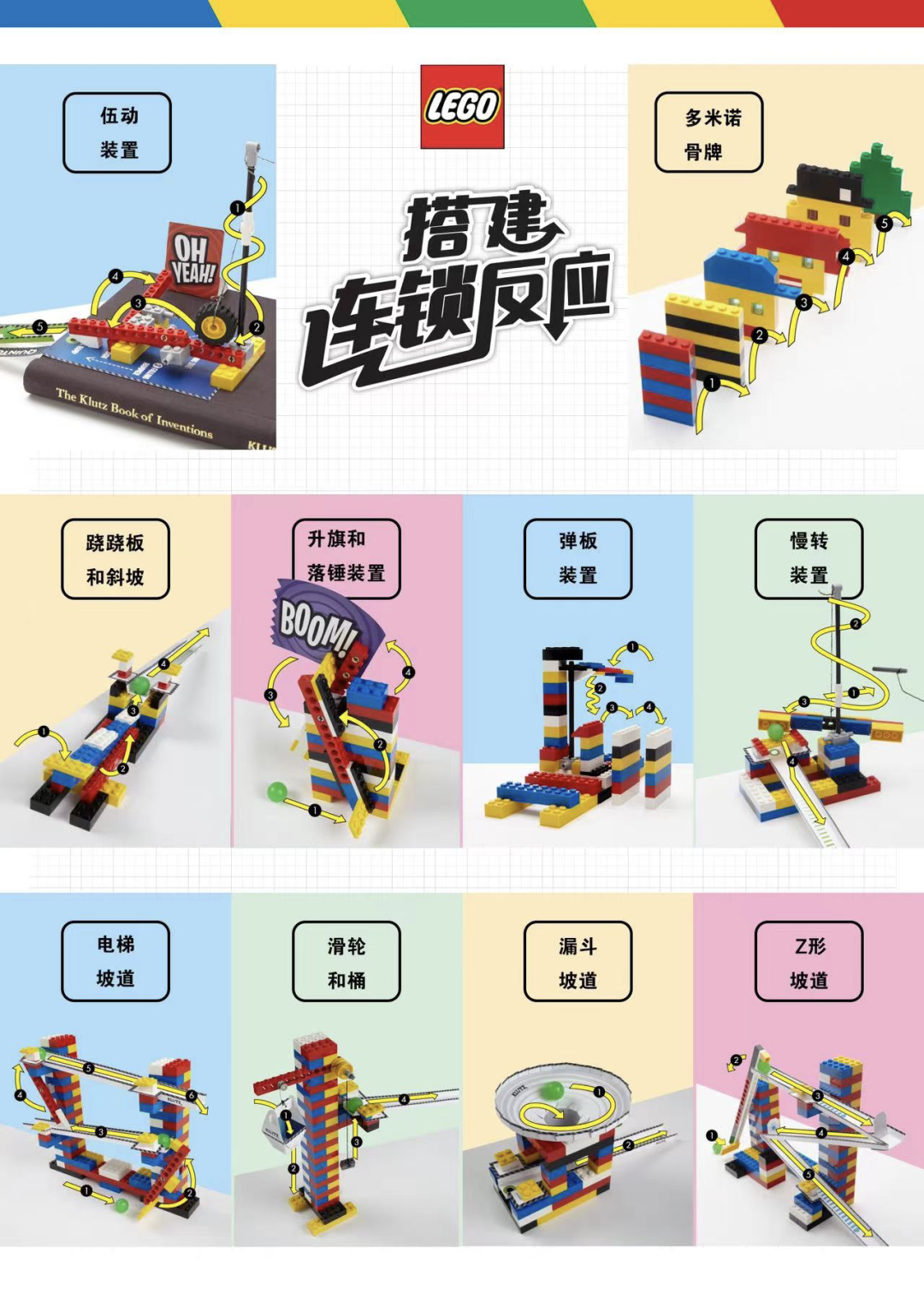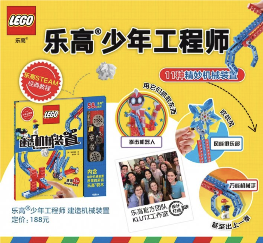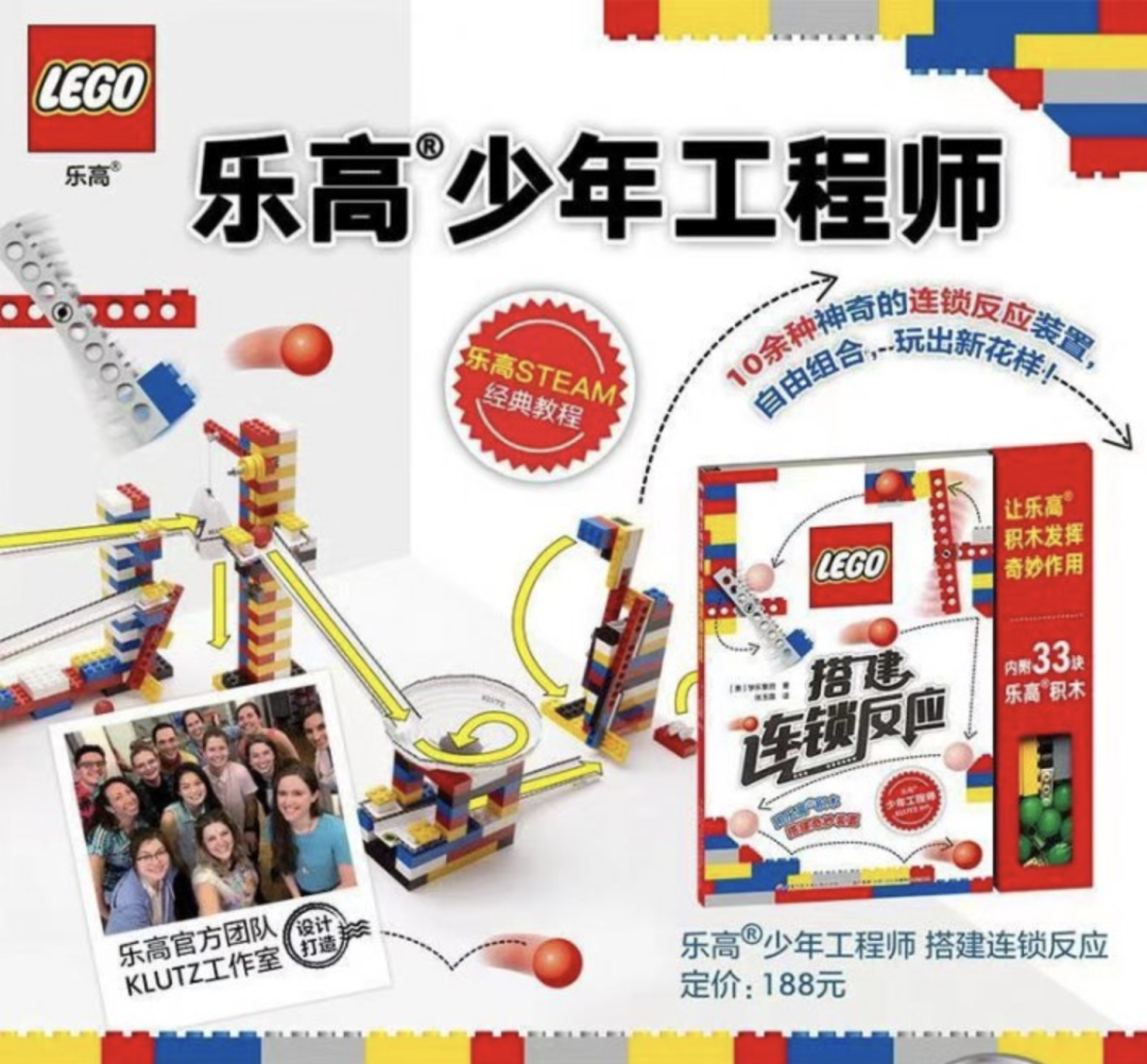 樂高官方團隊打造,樂高設計大師五十川芳仁參與設計。樂高經典STEAM教程,內容融合物理、機械、工程、藝術等多學科教育。《極客機器人》學習工程學知識;《搭建連鎖反應》觀察連鎖反應的因果關係;《建造機械裝置》動手體會基本力學原理。