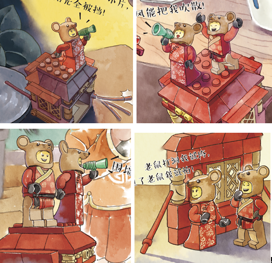 這是一本依託中國傳統民間傳說“老鼠娶親”的故事創作的繪本。相比傳統故事,本書一方面使用了樂高人仔和樂高玩具的形象,更加貼近小朋友們的審美需求,另一方面也在內容上更強調“接納自己”的重要性,讓老鼠姑娘與老鼠女婿同心協力擊敗了貓,也用自己的實際行動向老鼠爸爸證明了自己的能力,凸顯了“我的命運我做主”“只要團結努力就能勝利”的概念。
