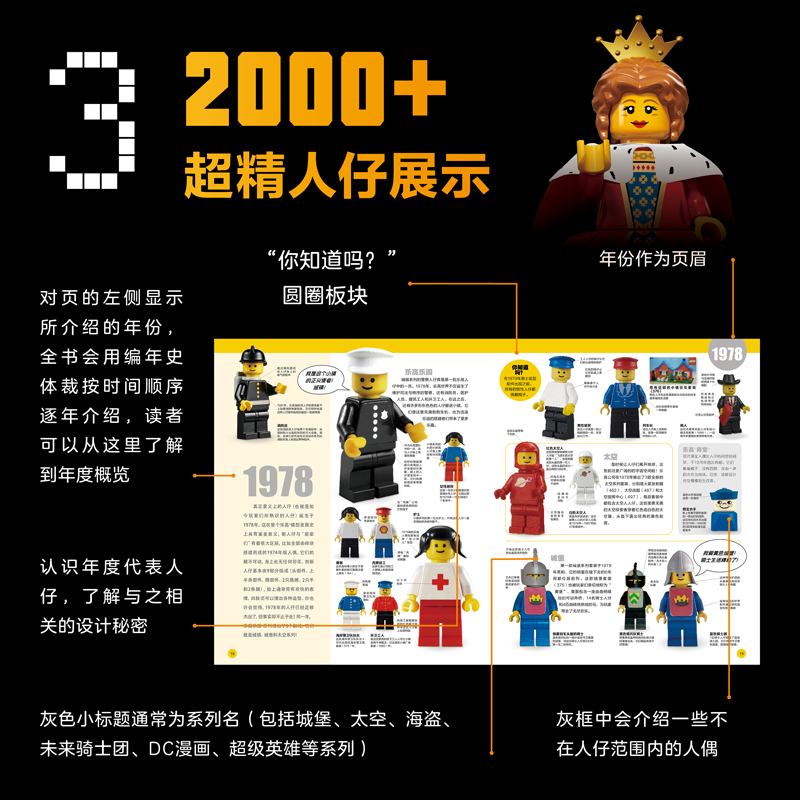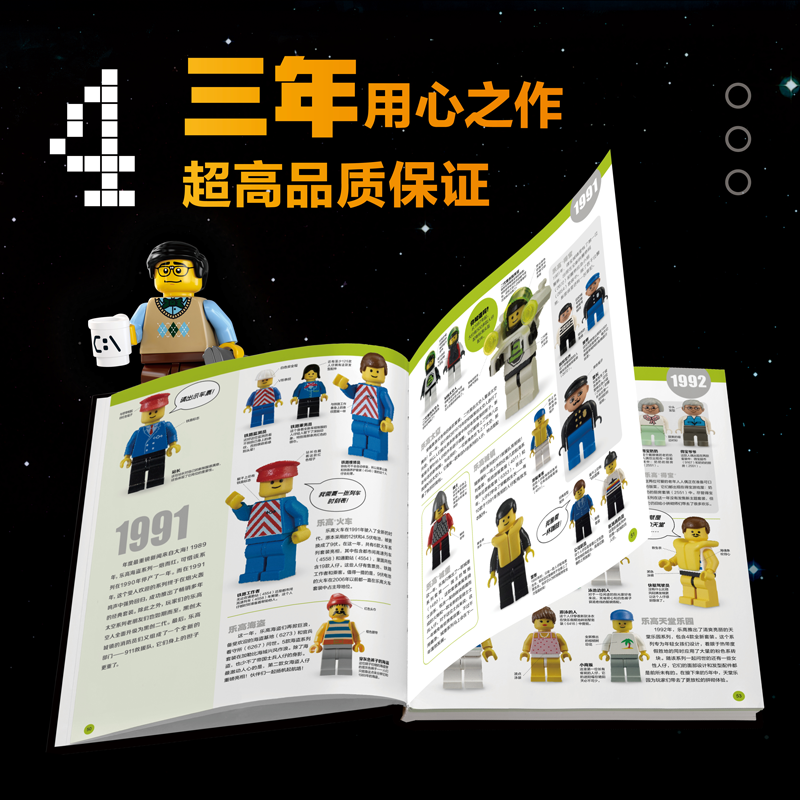 這本書附帶的人仔就是傳說中的、曾經極其昂貴的獨佔版橙色宇航員。作為樂高套裝中最為標誌性的元素,截至目前為止,樂高集團已經生產過超過80億個人仔了,所有人仔連起來大概可以繞地球5圈!