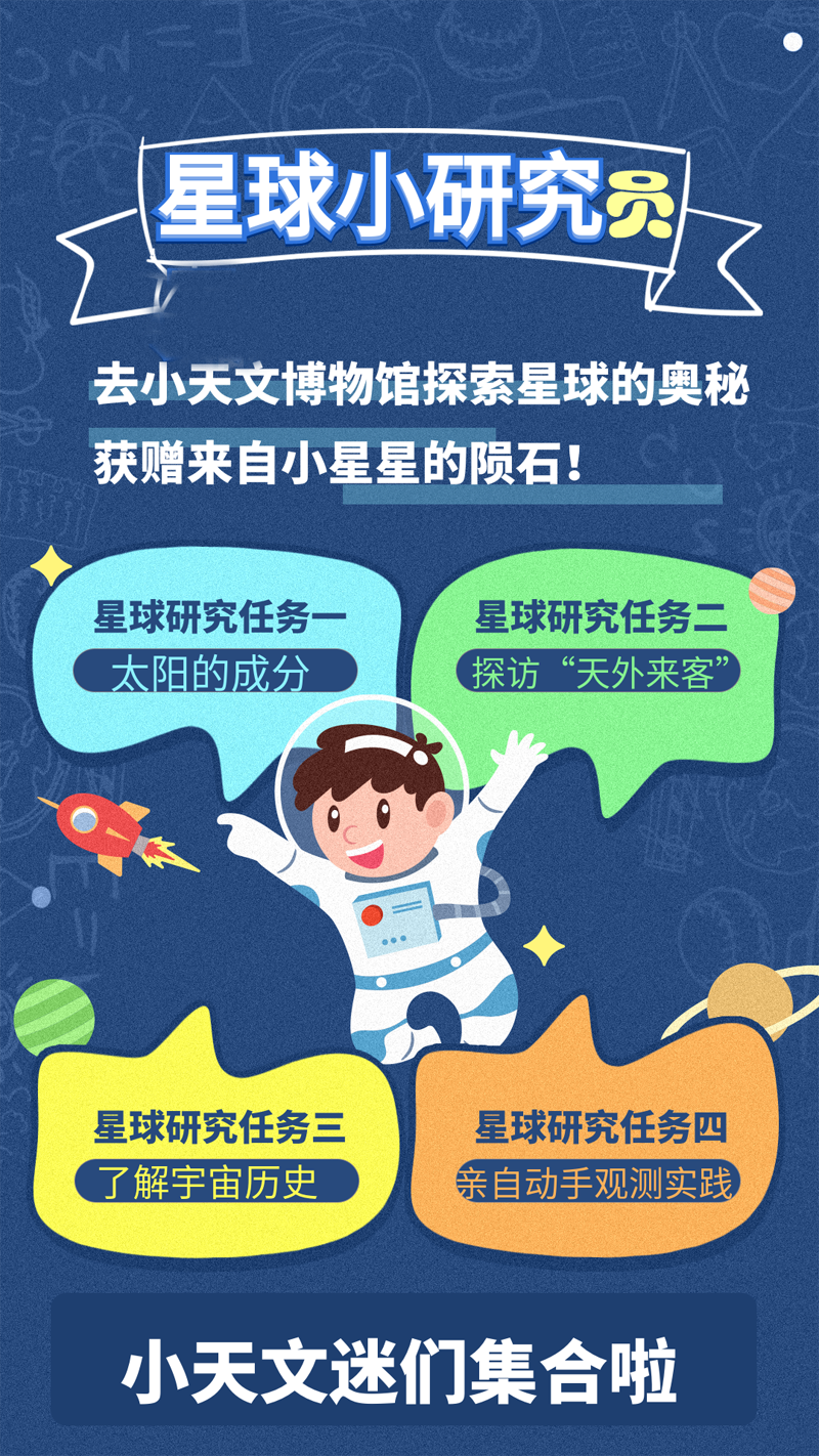 “星球研究員”活動不同於傳統的天文體驗活動,受天氣影響小,方便家長提前安排活動計劃;又在實踐的基礎上添加了研究式教學模塊,自主性研究的佔比大,可以讓孩子在快樂與興趣中打造出自己的第一份天文研究報告,培養良好的研究性學習習慣。