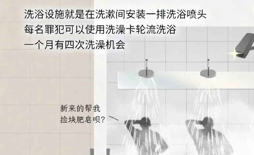 與此同時,每個監室住8到12人,配備有熱開水器、公共洗漱間和衛生間,奢華程度堪比二星級酒店。