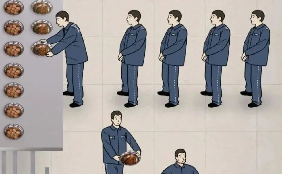 飯前,陳繼志需要和其他服刑人員一樣端坐著,等待管教人員下達指令,指令提到哪個小組,哪個小組就過去打飯。
