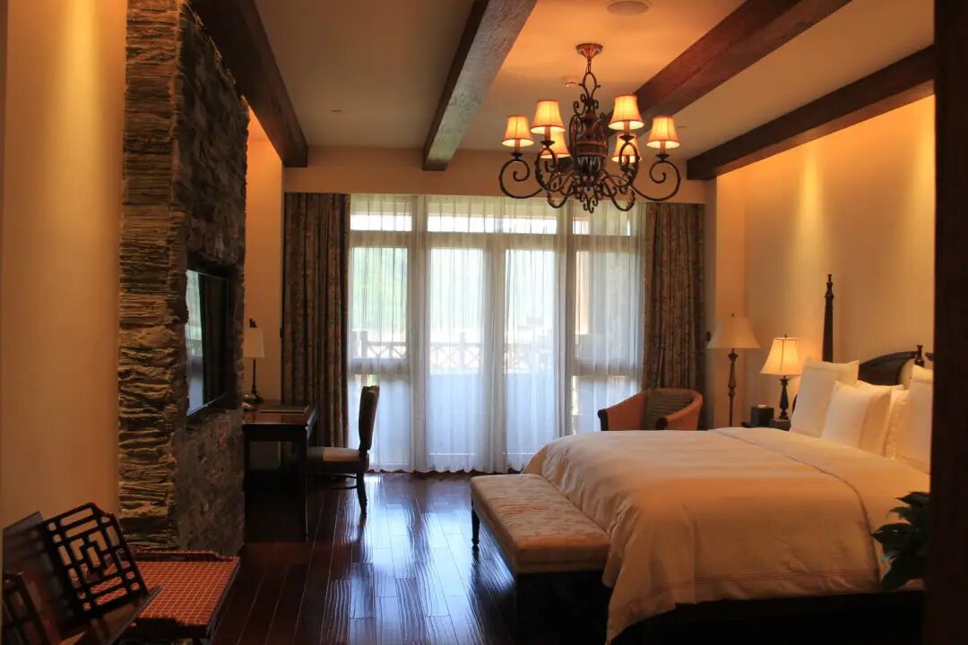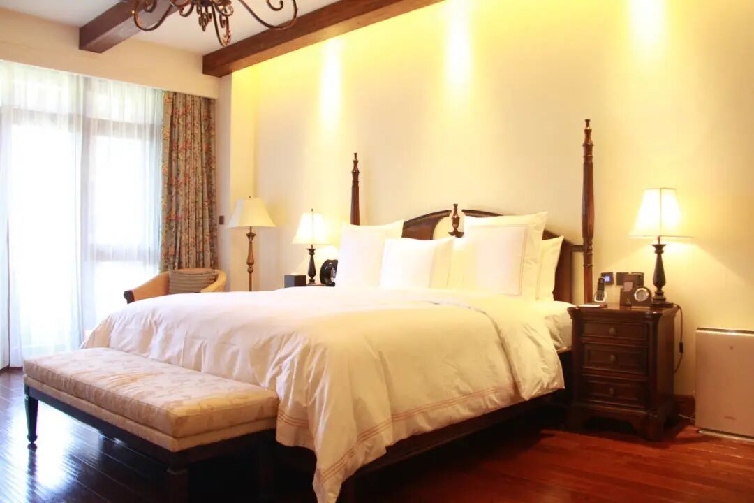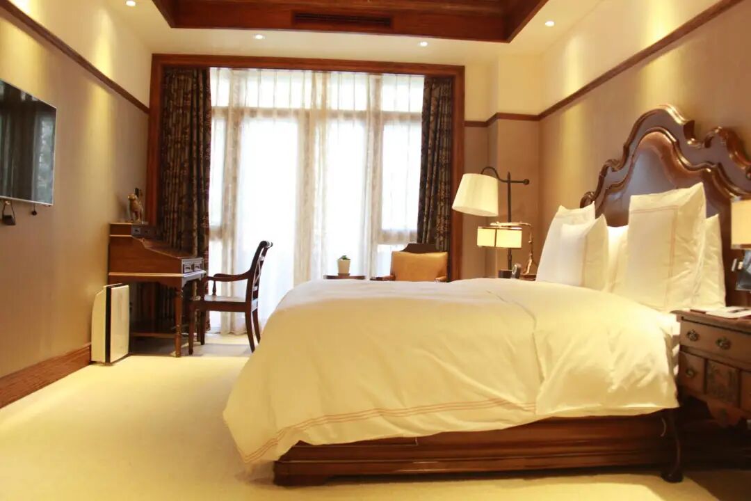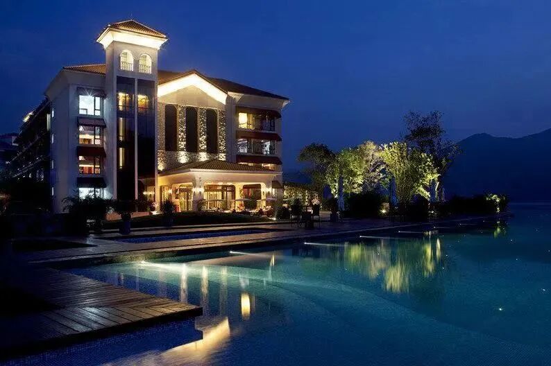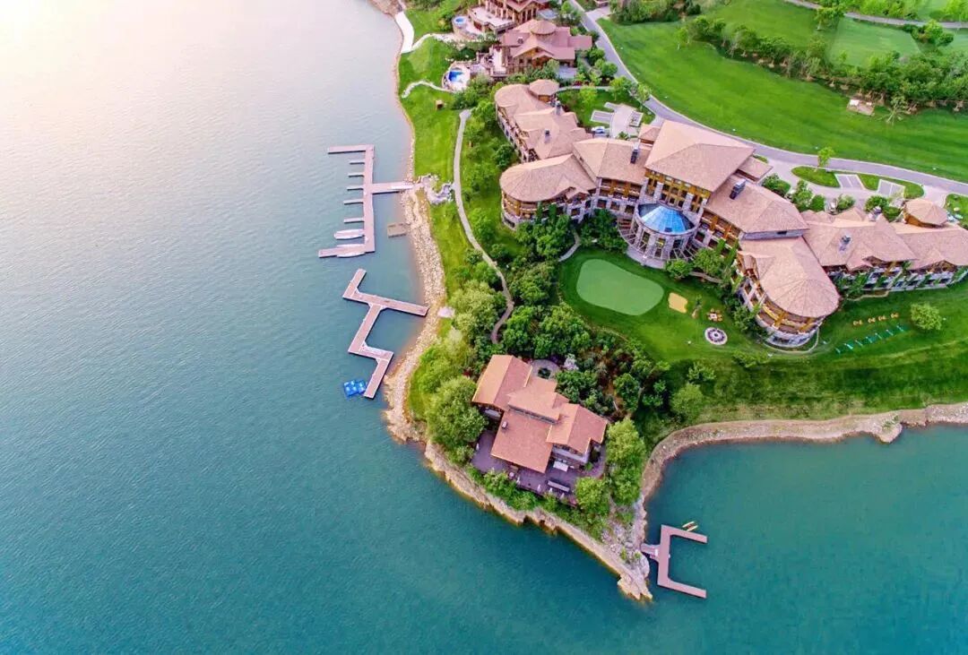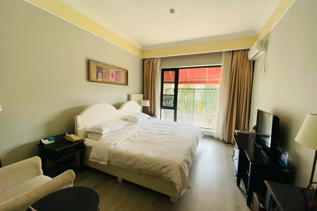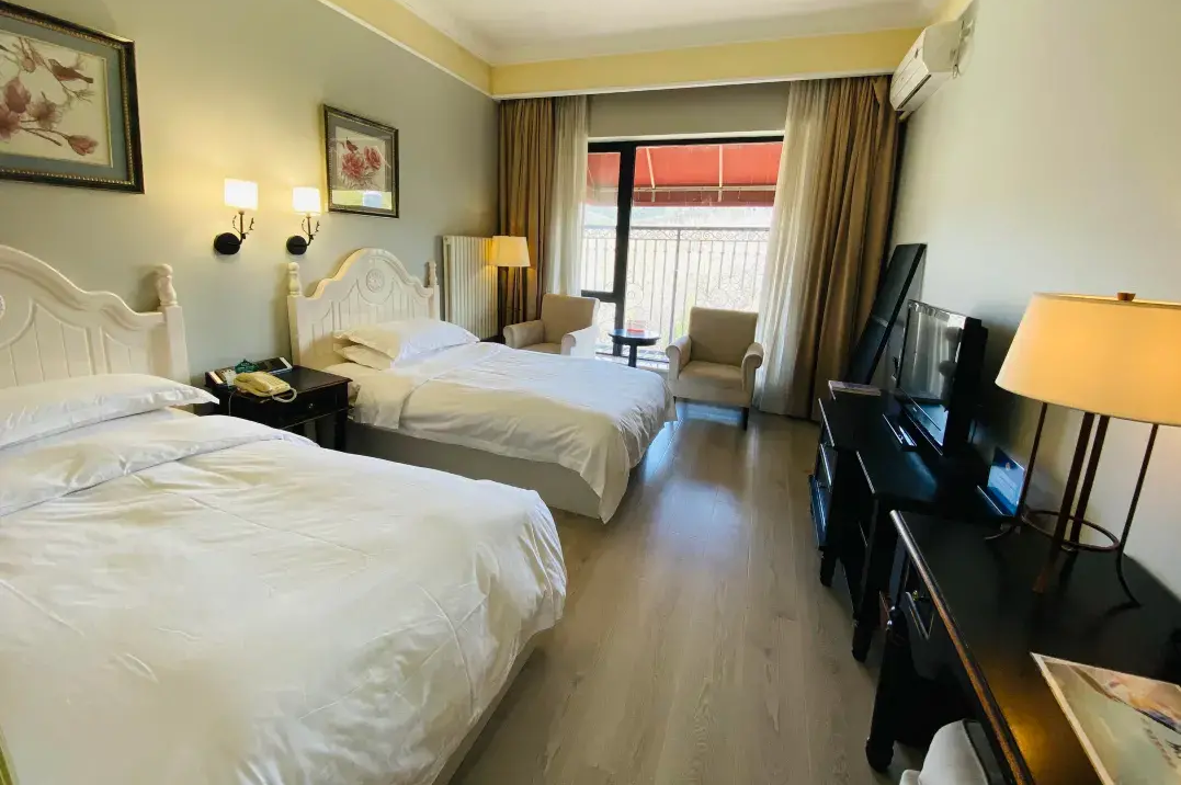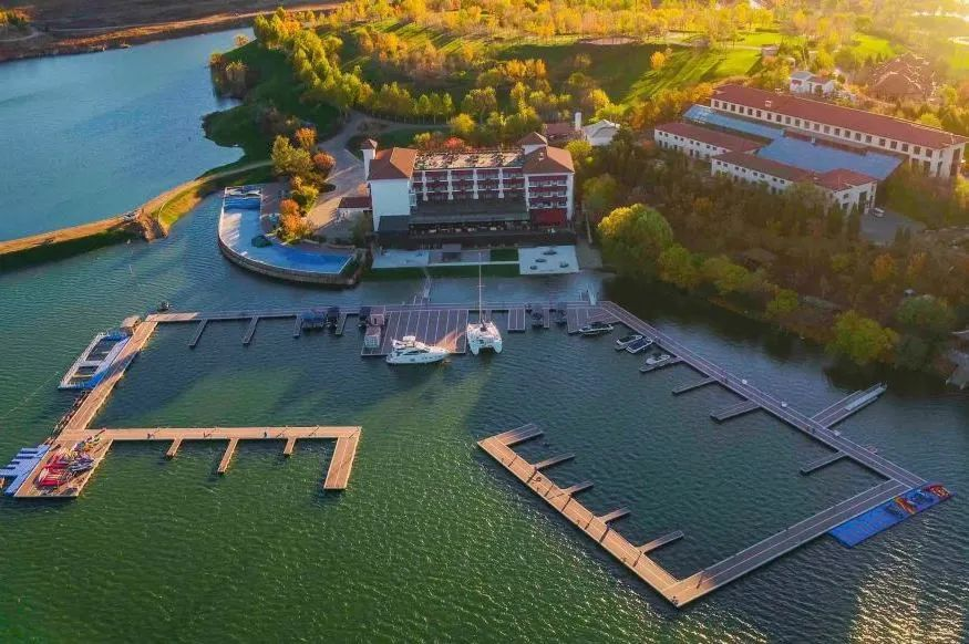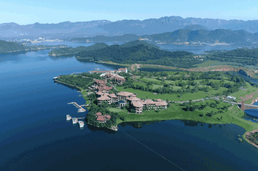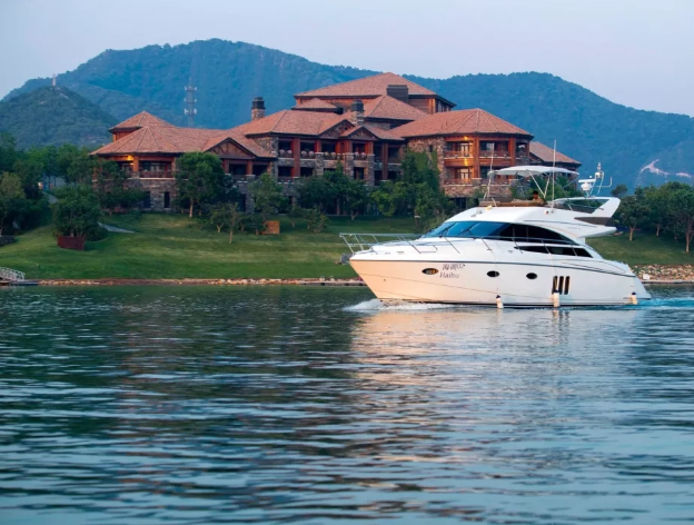 遊艇度假酒店以遊艇為主題,一棟白色外牆、紅色遮陽棚裝飾的簡約風格建築,在豪華遊艇的映襯下,顯得分外醒目,寬大而便捷的碼頭直通酒店入口。內有山景房、湖景房、家庭房、總套等不同戶型,共有64間客房。