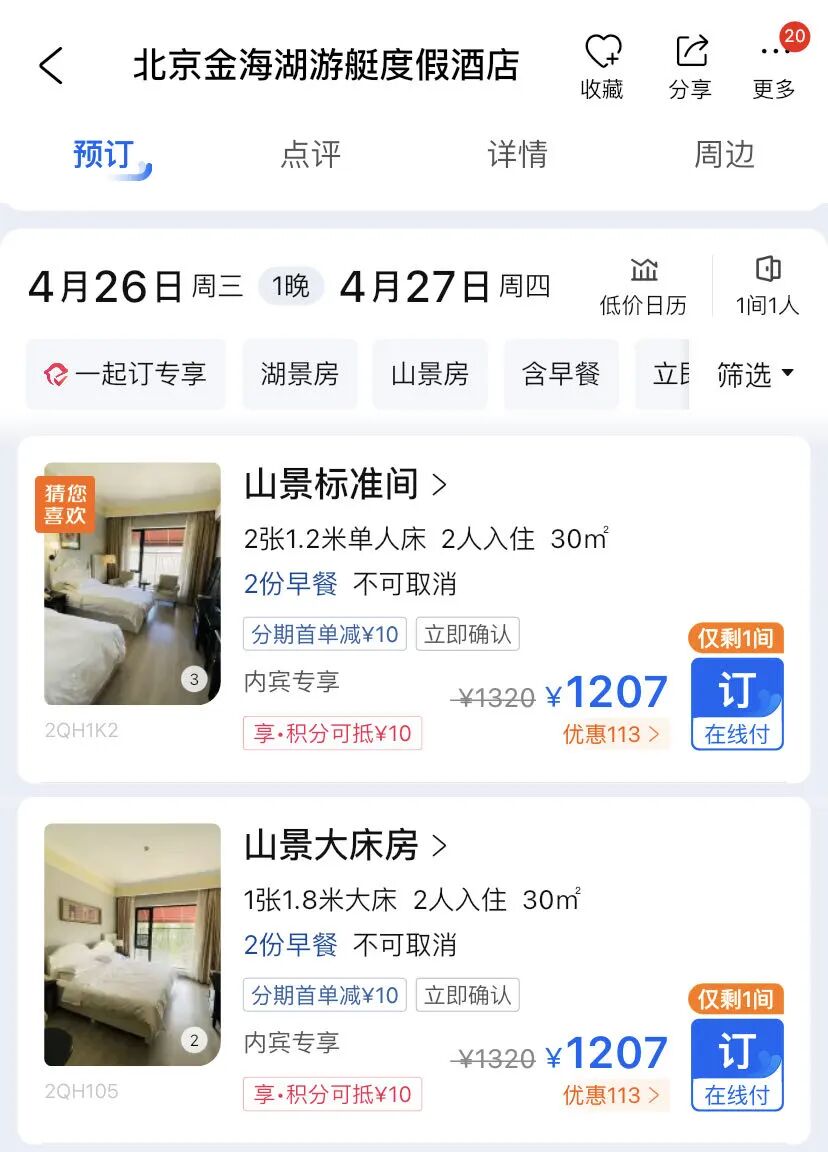 價格方面,某程房含早1晚¥1207起,2晚¥2414起