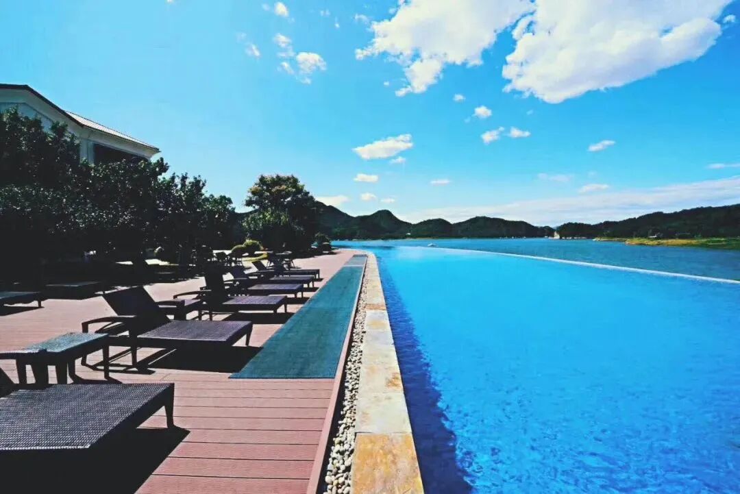 碧波花園島的清晨與傍晚,是屬於住店客人的,為日出或為一次黃昏的散步提供了足夠私密與安靜的環境。遊艇度假酒店旁的網紅無邊泳池,是酒店經常出大片的地點之一,長約百米,水深1.4-1.8米,泳池與金海湖平面有YI定的高度差,可以遠眺整個開闊的金海湖。游泳累了,點上一杯鮮榨果汁,在池畔看日落,浪漫非常。【套餐內包含,無邊泳池7-8月暑期開放,其餘月份開放室內恆溫泳池】