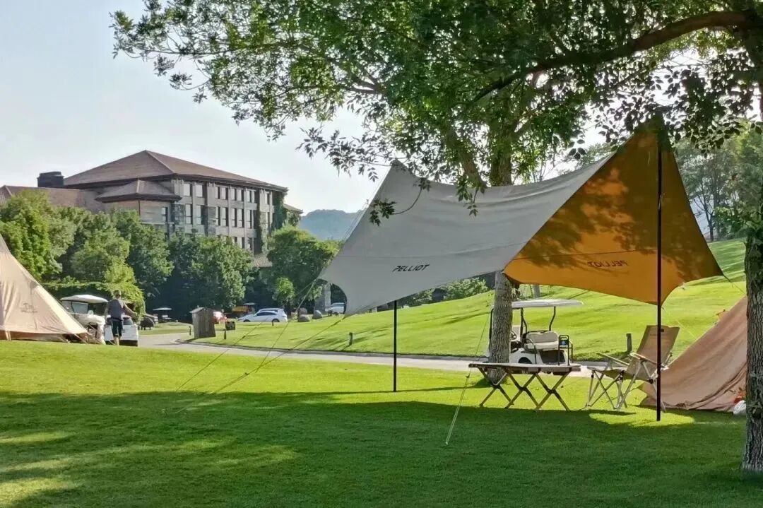 這個春天,你有露營的計劃嗎?金海湖擁有絕美的湖畔草坪和無比純淨的湖水,近可坐擁自然,遠可眺望群山;清晨聆聽蟲鳥齊鳴,夜晚抬頭仰望星空,這樣美的景色想想就讓人流連忘返,島上露營所有裝備均使用的PELLIOT品牌帳篷,露營地的草坪由高爾夫球場改造,草地光滑柔軟,享受高品質露營這裡超合適!
