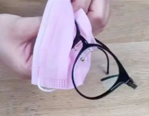 將一次性口罩中間的那層布料剪下來還可以當做眼鏡布用,若鏡片沾上汙漬用它輕輕擦拭就變乾淨了,十分實用。