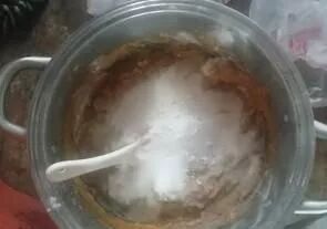 在攪拌的時候,依次加入紅沙糖,糖的量可以根據個人喜好來定,如果是把握不準的話,可以用筷子沾一點嘗一下。加完糖以後,我們再分多次加入糯米粉粘米粉,邊加邊攪拌,一直到能夠用手捏成型即可。