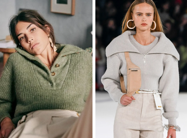 什麼是“爺爺毛衣”,其實是毛衣+polo領的元素結合在一起,也可以說翻領毛衣