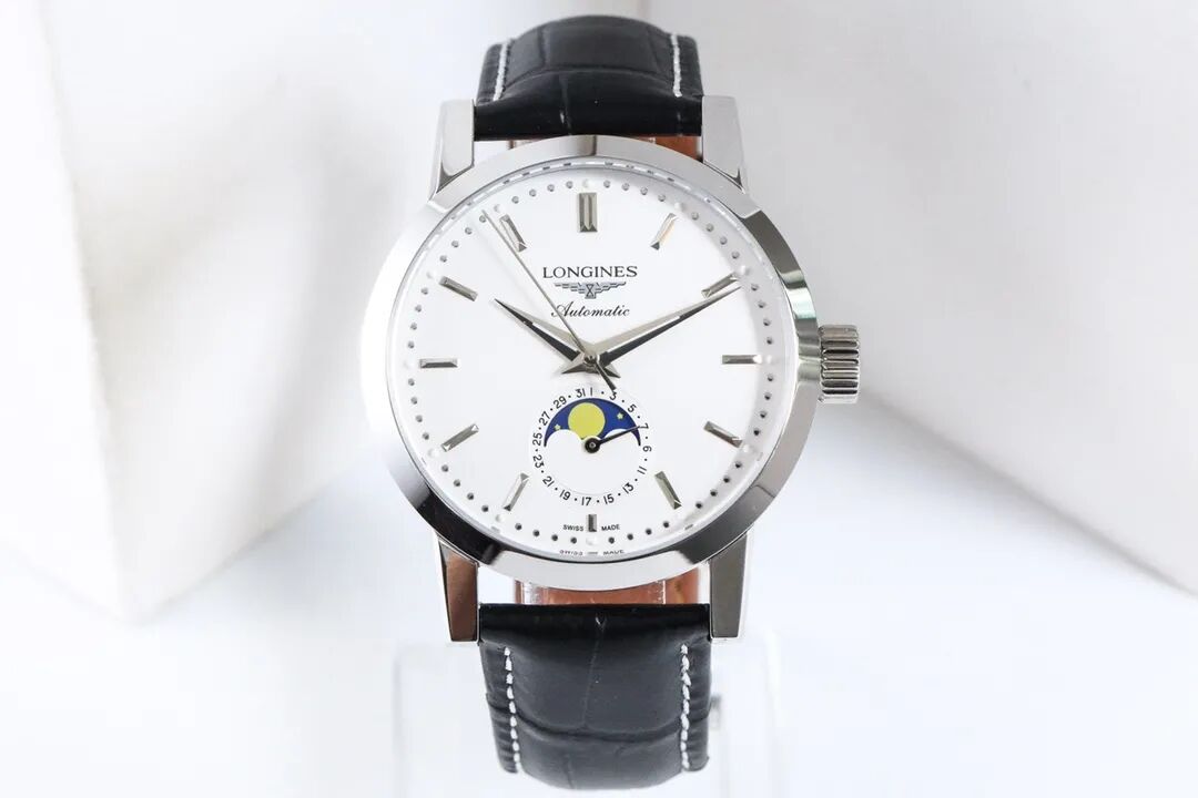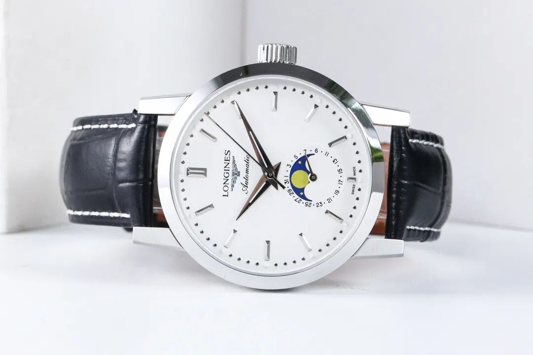高顏值加上穩定的性能、再加上親民實惠的價格定位,這也是表友們選擇它的主要原因。這款是名匠系列1832月相錶,不同於名匠月相錶的外形設計,40毫米的表徑設計符合大眾男士腕周尺寸,這隻腕錶的外觀更加簡潔、優雅,高級感十足,黯啞的米白色盤面搭配6點位置精緻的月相\日期顯示盤面,整體盤面佈局和諧自然,頗有內涵。