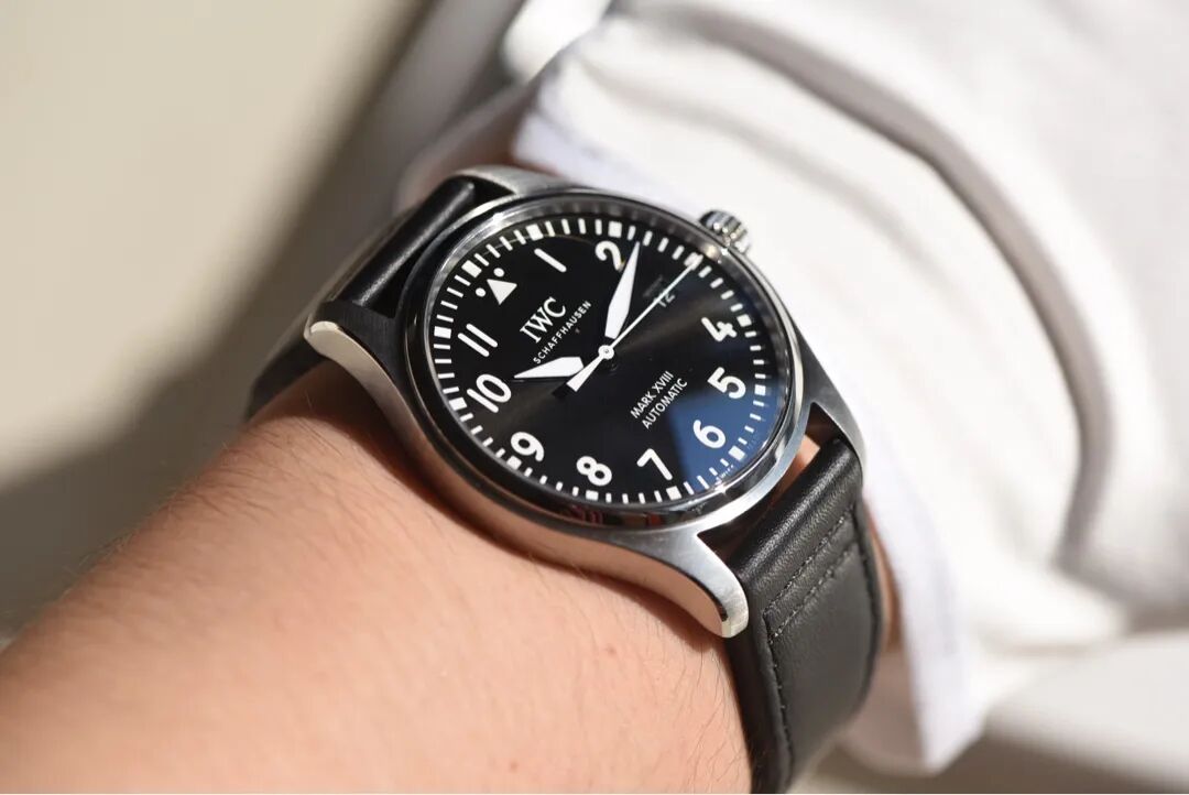 這款在這個價格區間內性價比極高。這款IW327001屬於享有“表界工程師”封號的飛行員系列,腕錶搭載Cal.30110機芯,具有42小時的動力儲備。優越的防磁保護性能使之更加精準,錶盤的設計模仿了駕駛艙儀表,省略了日期顯示使得錶盤外觀有了更多的空間。表鏡採用藍寶石玻璃材質,抗磨損程度非常高。搭配小牛皮錶帶,整體設計十分簡潔。