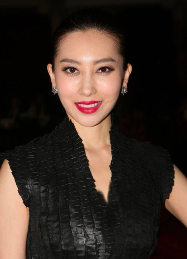 殷旭身穿一襲黑色深V禮裙出席某場活動,全黑的裙子突出殷旭白皙的皮膚,在裙子上添加拼接的塊狀紋樣,讓裙子更有層次感。狹長的V領襯托出殷旭尖尖的下巴,展示出她精緻的鵝蛋臉,V領的設計還凸顯殷旭傲人的事業線,領口小幅度的外開既展現了她的熟女氣質,又不會顯得太過媚俗。