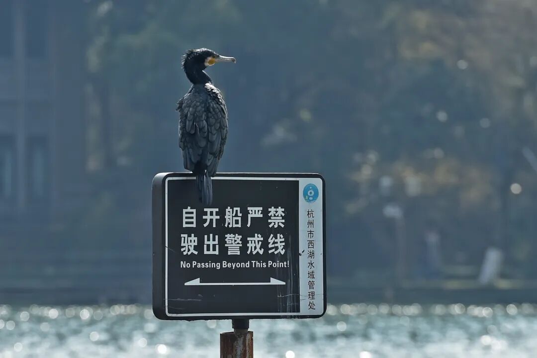 跟秋沙鴨“來得晚,去得早”正好相反,鸕鷀年年都是越冬候鳥裡的“首發陣容”,最早抵達西湖,最晚才肯離開。一定是貪戀西湖美景,這裡又吃喝不愁,魚蝦鮮美,我們非常理解你,慢慢來,在杭州多待會。