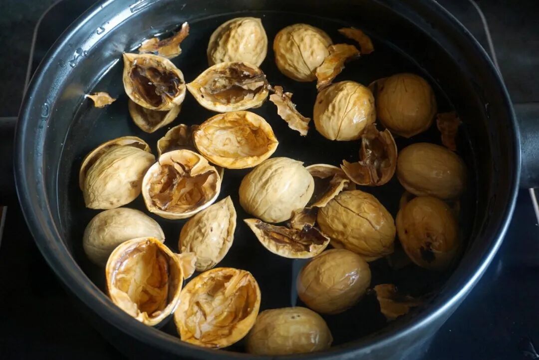 方法二:將核桃分心木和核桃洗乾淨,一同放入鍋中,使用小火煎煮大約一個小時左右,隨後去掉核桃的外殼,留下的果肉和水分就可以晾涼之後食用了。