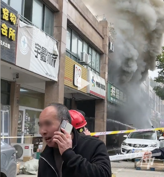 起火的二樓下方,有洗車店、彩票店、物流公司,還有寵物店。