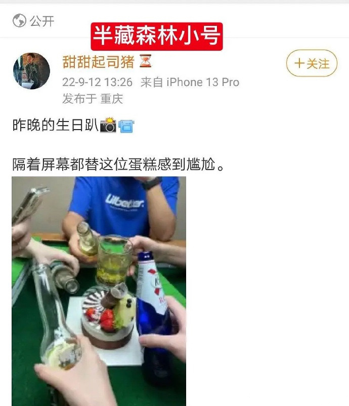首先,有細心的網友發現,半藏森林曾經在小號上發佈過慶祝生日的相關內容,而那一天與任胤蓬的生日恰好吻合。