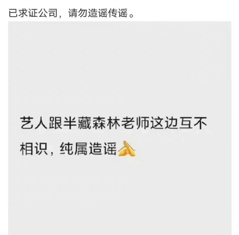 隨後,任胤蓬後援會也向其公司求證後發文稱:藝人跟半藏森林老師這邊互不相識,純屬造謠,請大家勿造謠傳謠。