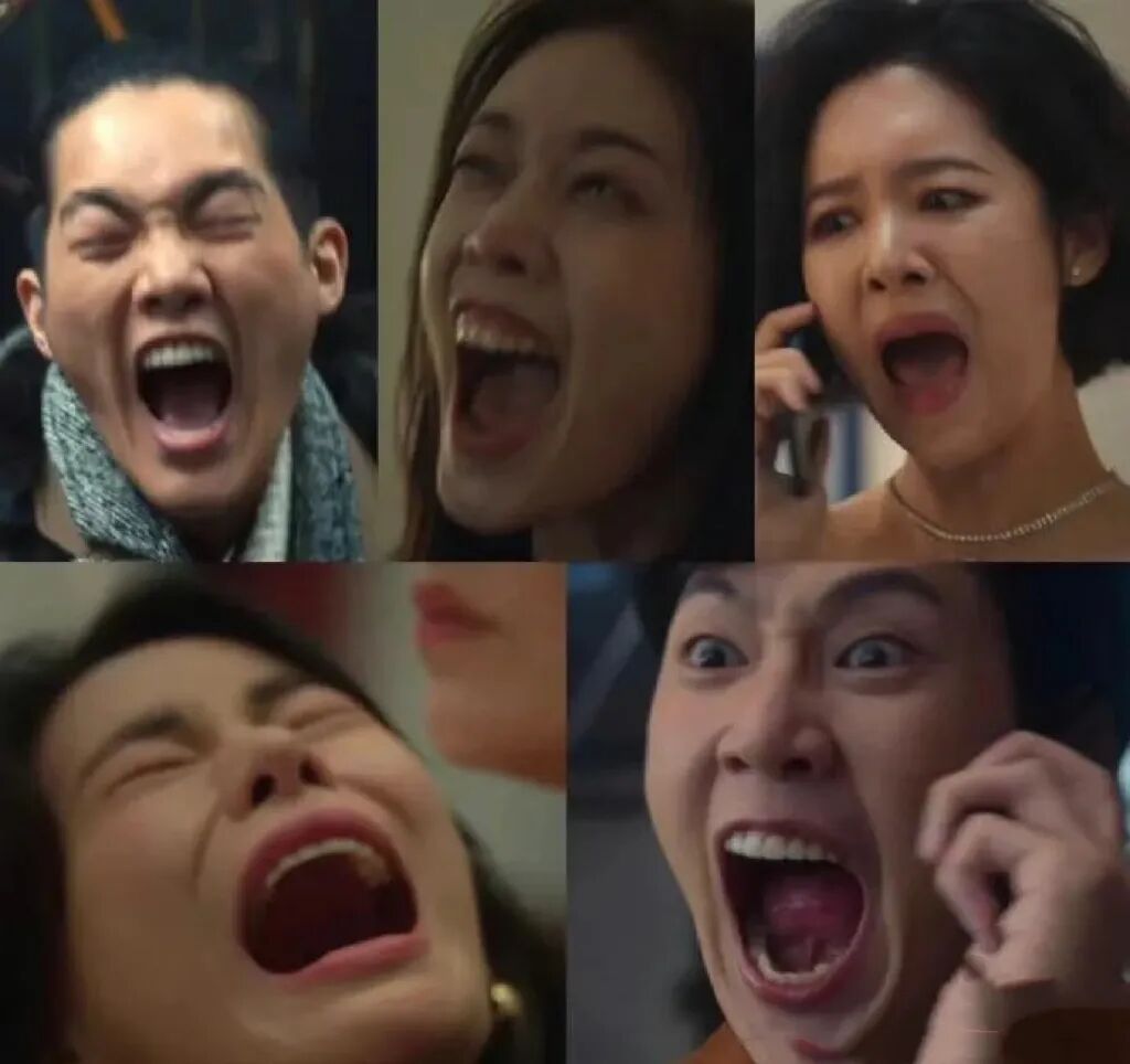 雖說反派霸凌五人組,各有各的壞,面對喬姐的報復,都是統一的“西八”輸出,面部表情猙獰如世界名畫《吶喊》。