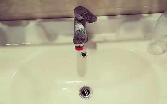 做好之後將噴噴壺對著洗臉盆噴灑幾下,稍後用抹布擦一擦上面的汙垢可以輕鬆擦下來了。