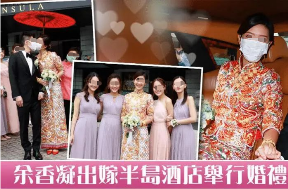 婚禮當天,餘香凝身穿龍鳳褂,新郎陸政渡穿著西式禮服,看起來確實挺養眼的哈。