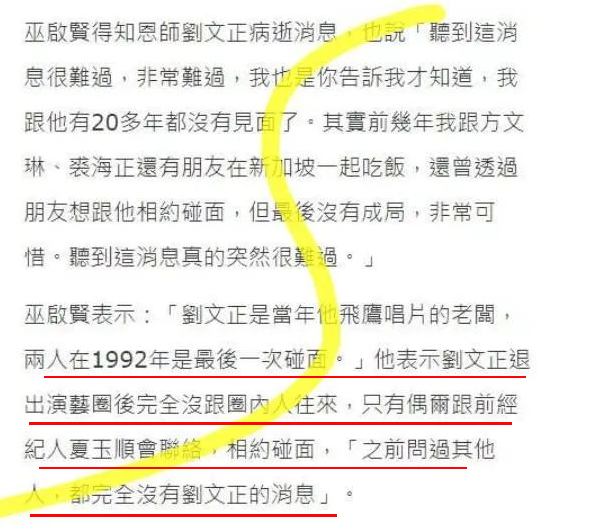 一會又說死訊是從劉文正歌迷口中得知的,吹噓自己在劉文正死前2個月還見過他。