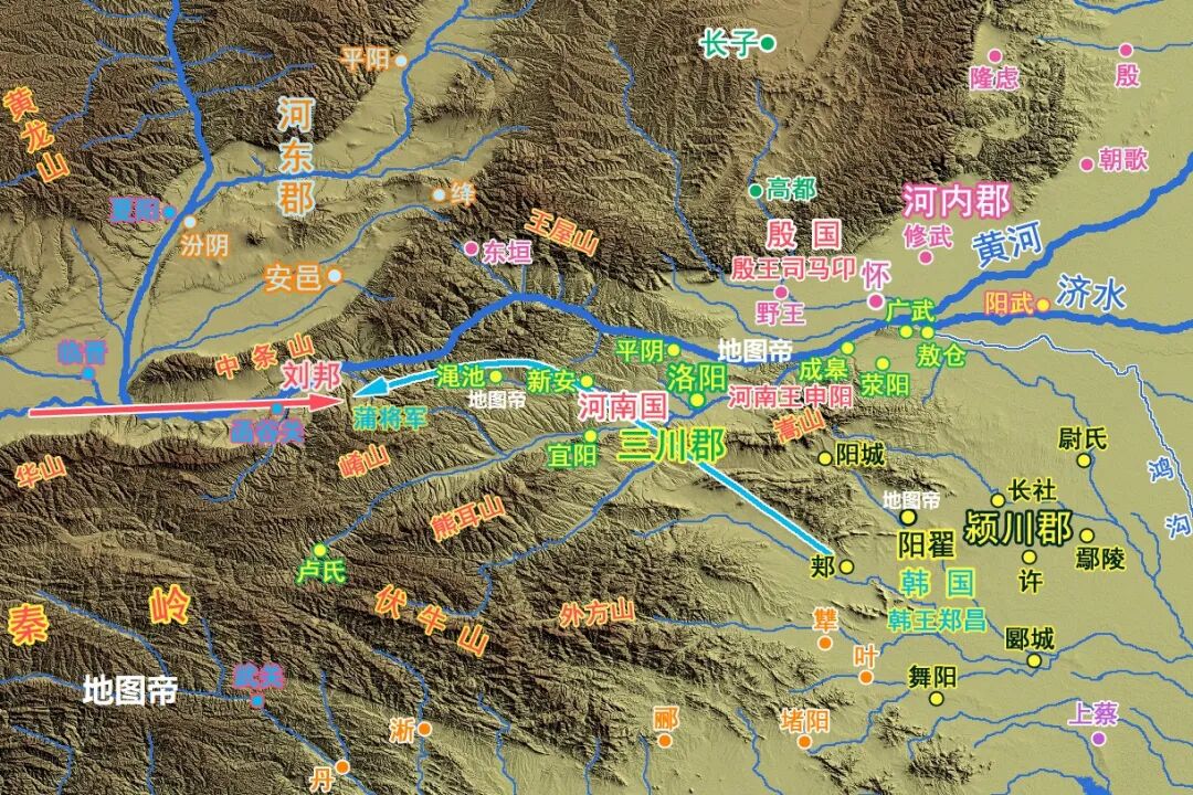 劉邦攻擊的是韓國,要經過定都洛陽的河南國。河南王申陽本就是常山王張耳的心腹,雖在南下太行山時與張耳產生矛盾,但畢竟不想充當楚漢相爭的炮灰,也加入劉邦軍團。