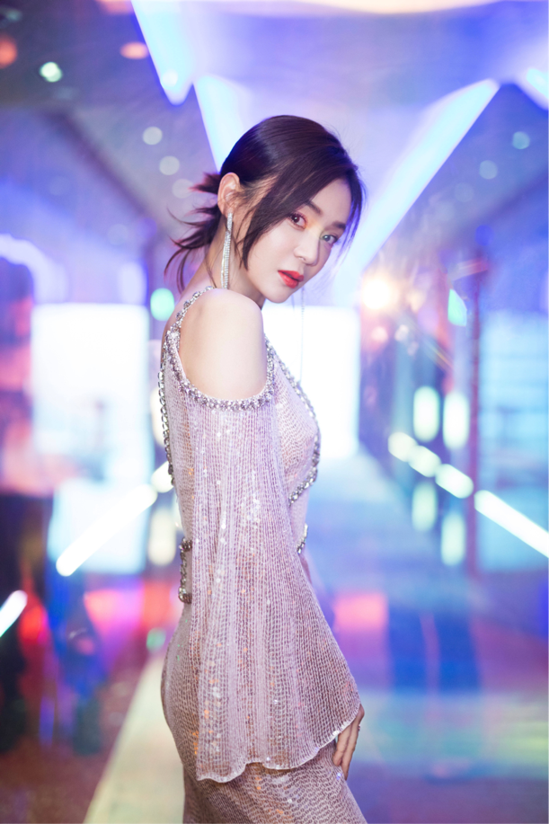 袁姍姍上身的亮片連衣裙,整體緊身款式的設計凸顯了她超好的身材,把整個線條都修飾得非常柔美。裙裝腰部收緊的設計,很好的將袁姍姍的腰線凸顯了出來,調節了身材比例,給人腰部以下全是腿的感覺。低領口與露肩的設計更是性感又溫柔,女人味十足,垂墜性的面料還能給人一種特別高貴的感覺,名媛感十足。