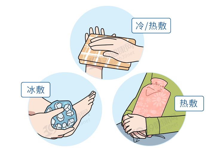 冷敷適用於急性運動造成損傷的早期、輕微燙傷以及肌肉痙攣後;熱敷適用於急性運動造成損傷的後期、經期疼痛、落枕等疼痛情況。