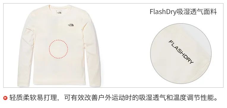 北面在純棉的基礎上都特別做了吸溼優化,長袖款還用了北面特有flashdry吸溼透氣技術。