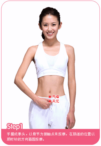 每次先用右手大約在胃部按順時針方向揉120次,然後下移至肚臍周圍揉120次,再用全手掌揉全腹120次,最後逆向重複一遍。