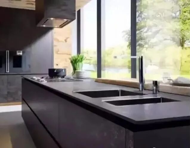 ▲最後來說說石英石臺面,石英石也是人造石的一種,不同的是,它是通過打碎石英石再用樹脂粘合而成。石英石臺面本身硬度很高,不怕劃傷,也耐酸鹼油汙。