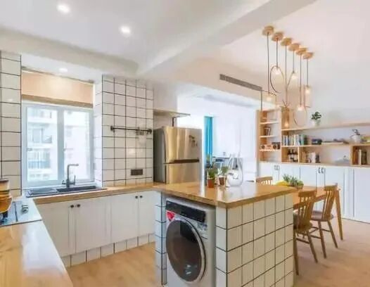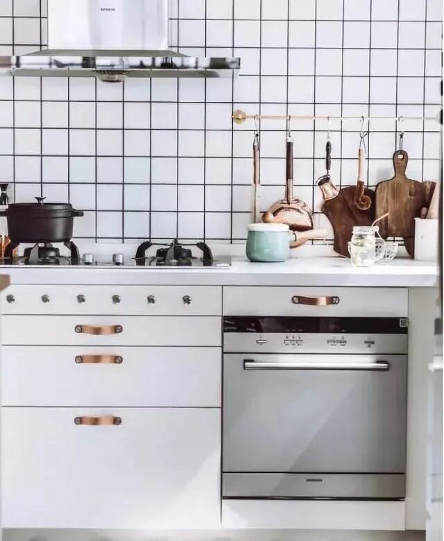 如果廚房面積比較小的話,可以選擇小白磚,它能增加小廚房的層次感,但小白磚的縫隙有點多,想要不顯髒,美縫時要儘量選深灰色或者棕黑色。