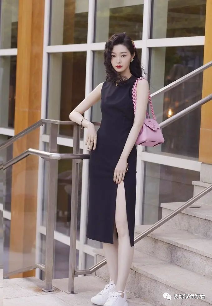 她的羊毛蛋卷髮型格外美,參加活動當天,除了現場照,宋軼工作室還曬出了一組新的寫真,髮型、耳飾以及包包都沒變。彩色短裙變成了黑色高開叉裙,無袖+開叉,以另一種方式秀出了纖細的四肢,精修中宋軼的雙腿就很纖細修長了。腳上是小白鞋,造型變得更日常了。