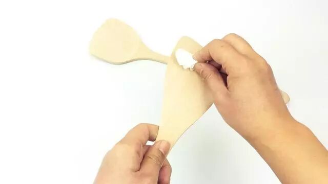 然後將食用油均勻的塗抹在木鏟上,每個地方都要塗抹到