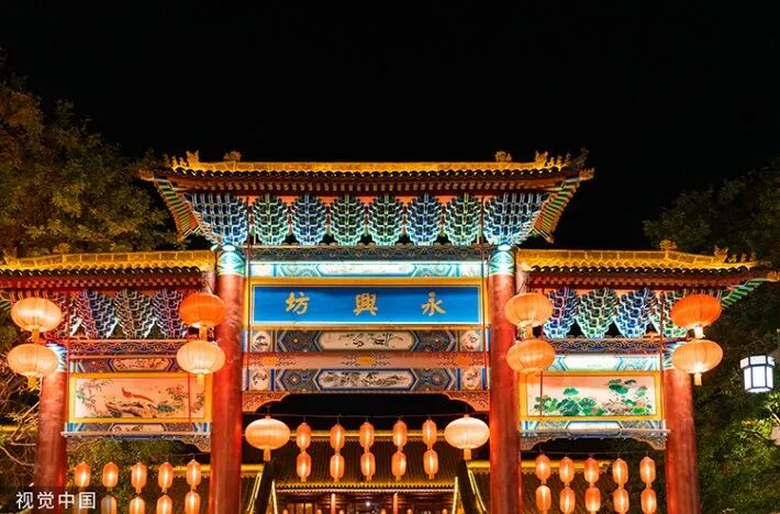 【永興坊】主要以關中牌坊和具有民間傳統的建築群組合,形成古裡坊式佈局,展示古長安城的街坊式形態和歷史生活氣息,以及傳統民俗生活空間。這裡也是一千四百多年前中國史上久負盛名的諫臣—魏徵府邸。在永興坊不但可以感受"唐城108坊"的風貌,還能夠自由品嚐到陝西各地特色美食。