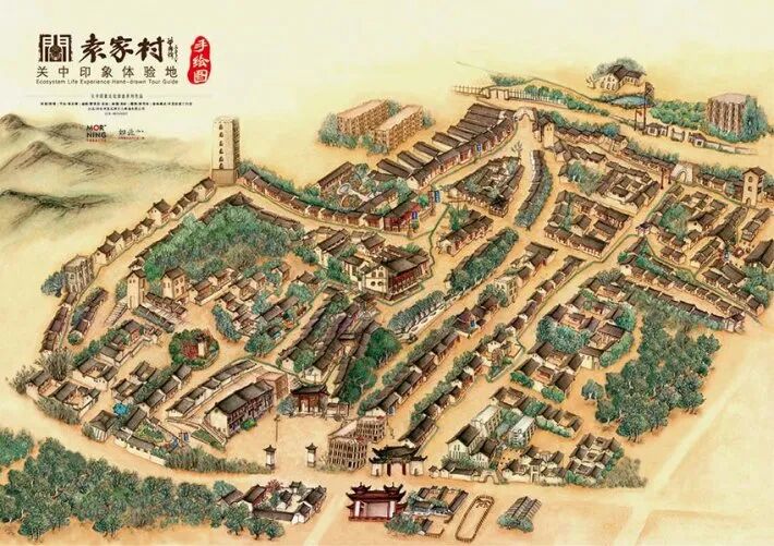 【袁家村】是位於咸陽禮泉的一個特色民俗美食村落。一條青磚灰瓦的仿古街道,突出陝西關中民間生活形態和傳統特色作坊:油坊、布坊、醋坊、茶坊、麵坊、辣子坊、豆腐坊、醪糟坊、藥坊等一字排開。在這裡可搖一搖古井的轆轤,推一把磨面的磨盤,拉一下茶爐旁的風箱……
