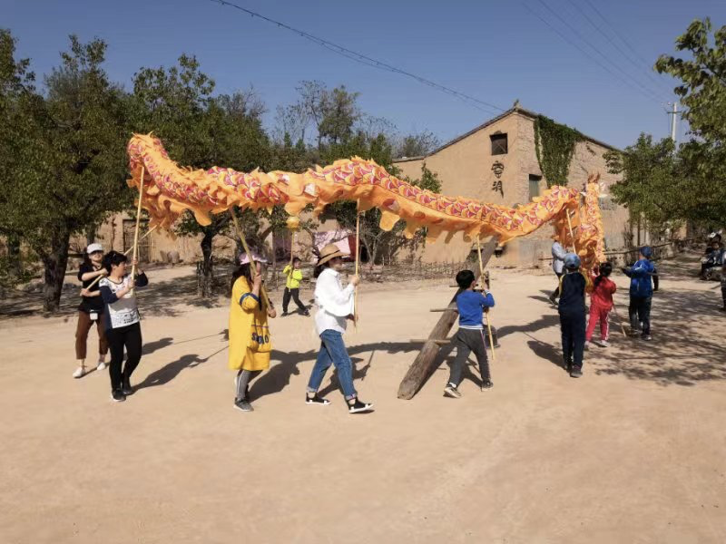 2. 開展民俗體驗活動:打護砌、舞龍、踩高蹺。在當地匠人的帶領下孩子們可以感受勞動的樂趣。